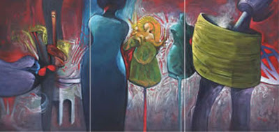 Jorge Chalco (1950-), ecuatoriano. Sus pinturas abarcan desde lo crítico social de denuncia, lo imaginativo con los personajes más diversos, hasta lo abstracto. Con el empleo de diferentes técnicas, muestra un sobresaliente dominio del color creando una obra de importancia dentro del arte latinoamericano.